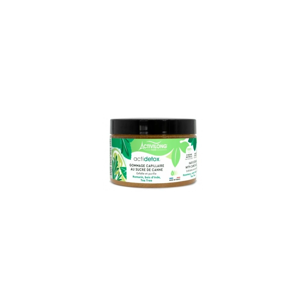 Le Gommage capillaire au Sucre de canne ACTIDETOX de la marque ACTIVILONG est un soin purifiant à base uniquement d’ingrédients d’origine naturelle. Il offre un gommage tout en douceur qui fera le bonheur de votre cuir chevelu.