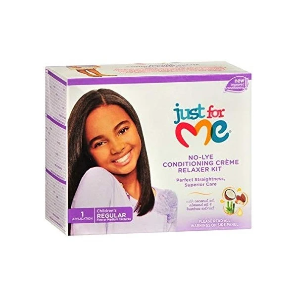 Le kit défrisant sans soude de la marque JUST FOR ME permet de défriser en douceur les cheveux des enfants.